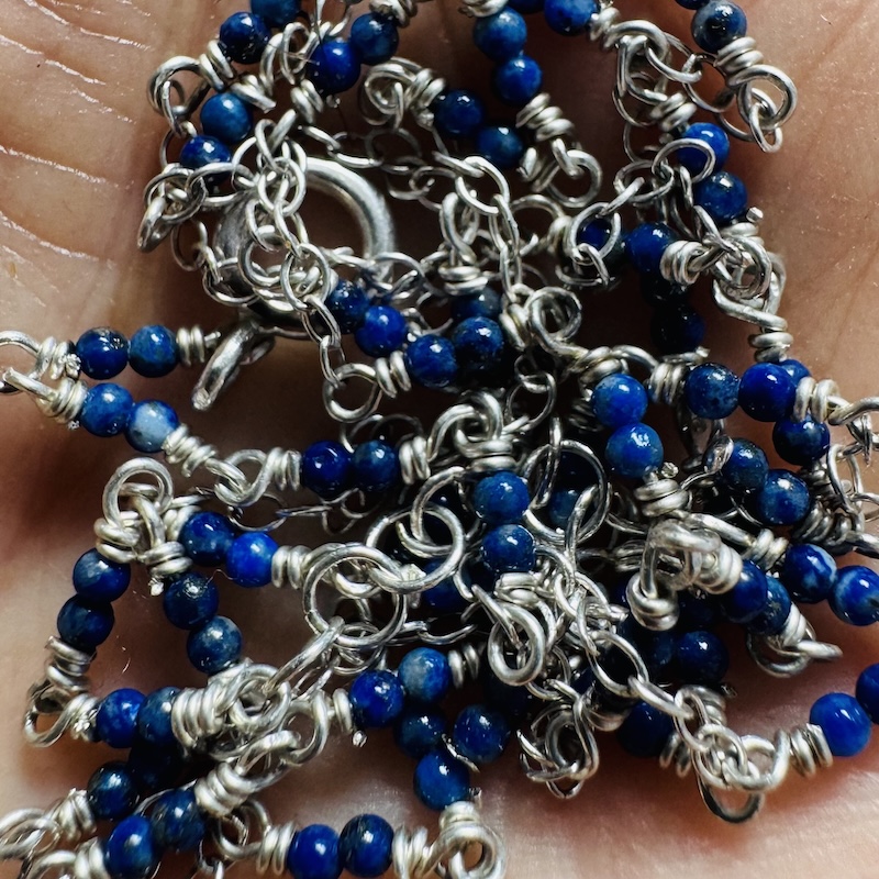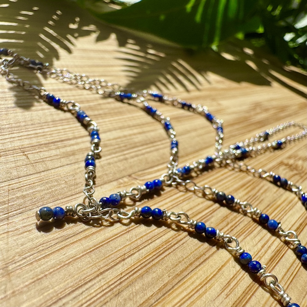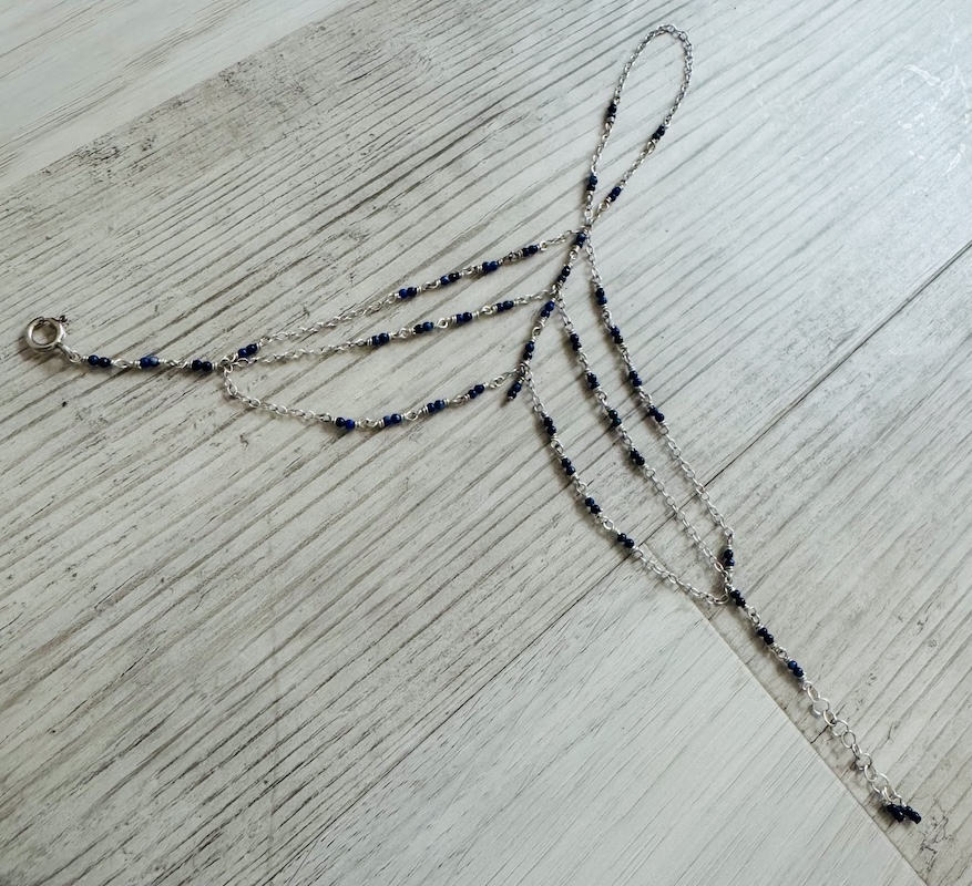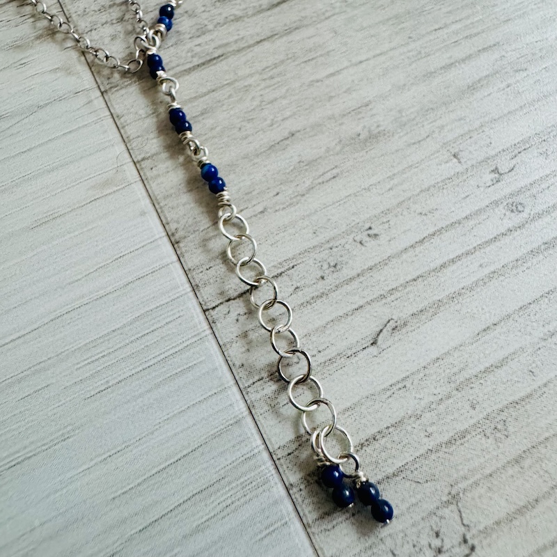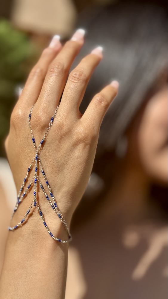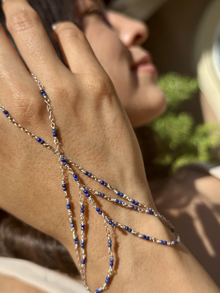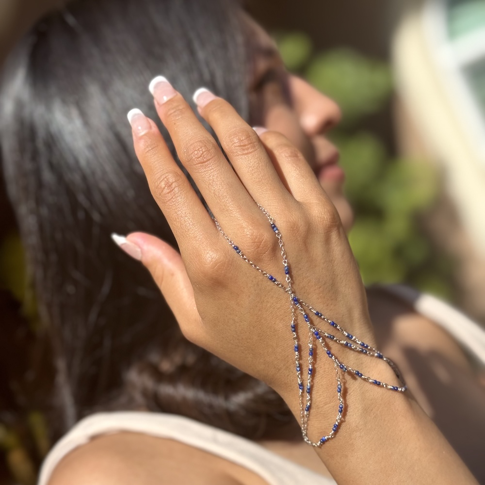 925 Sterling & Double Lapis Lazuli Hand Chain