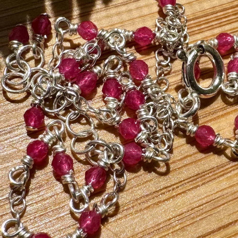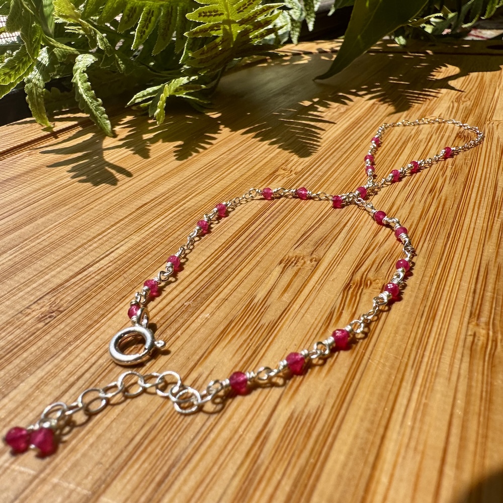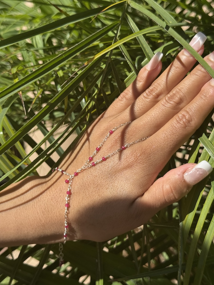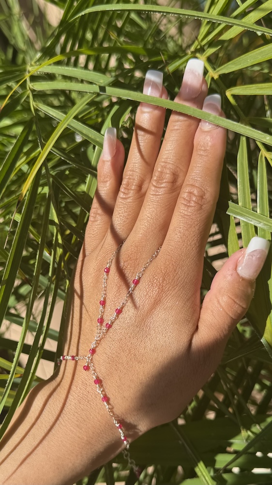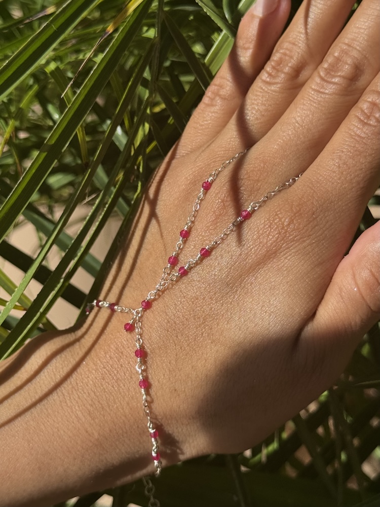 925 Sterling & Red Jade Fuchsia Wrap Hand Chain