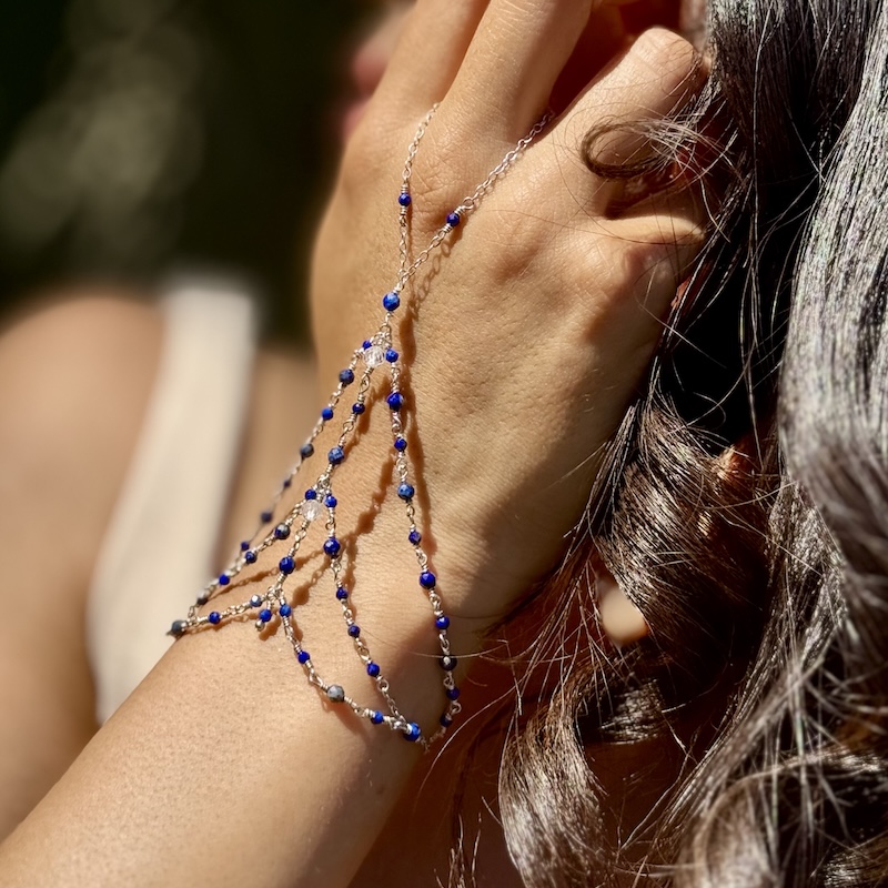 925 Sterling & Elaborate Lapis Lazuli Hand Chain